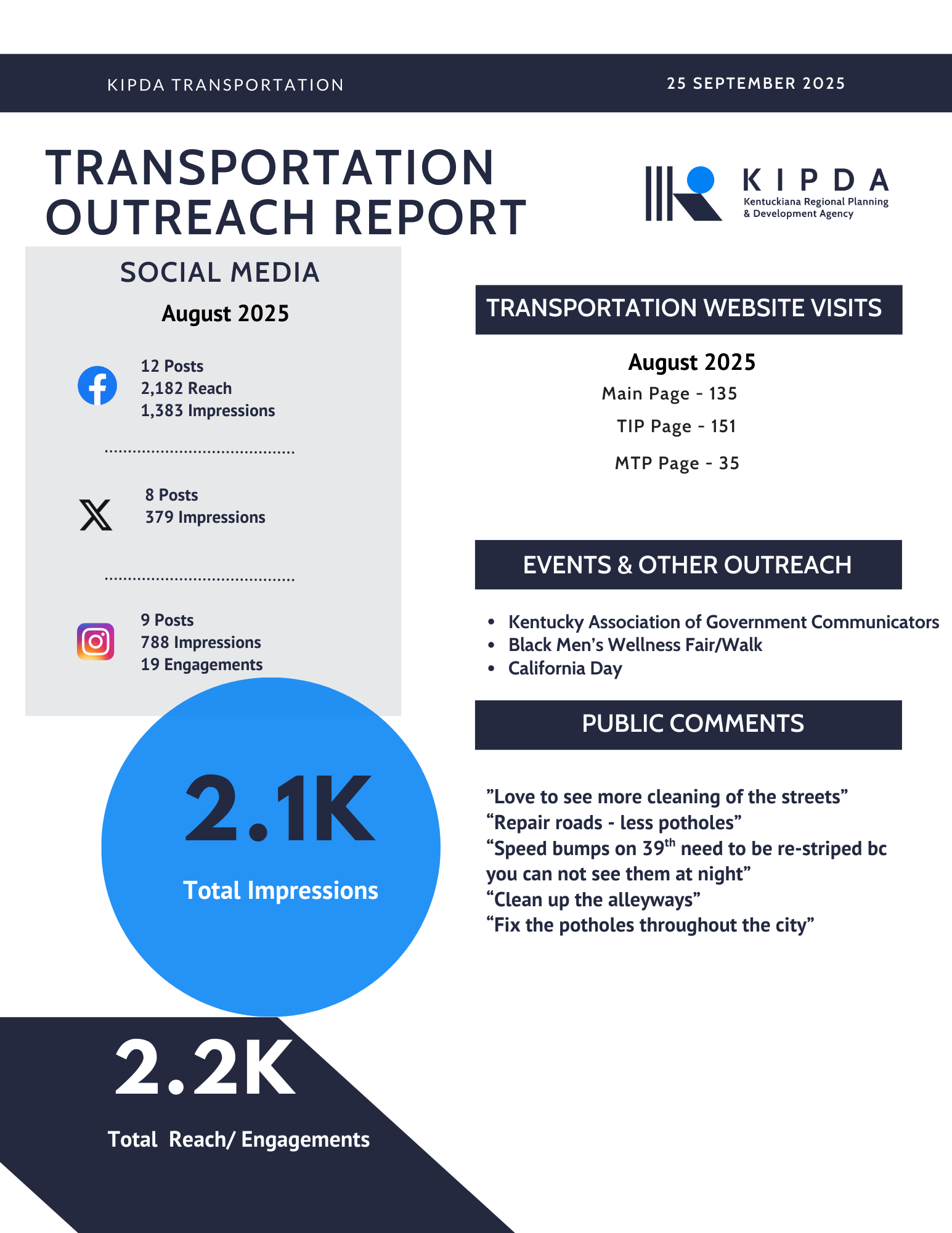 Members of the public are encouraged to submit public comments prior to the meeting at kipdatrans@kipda.org.